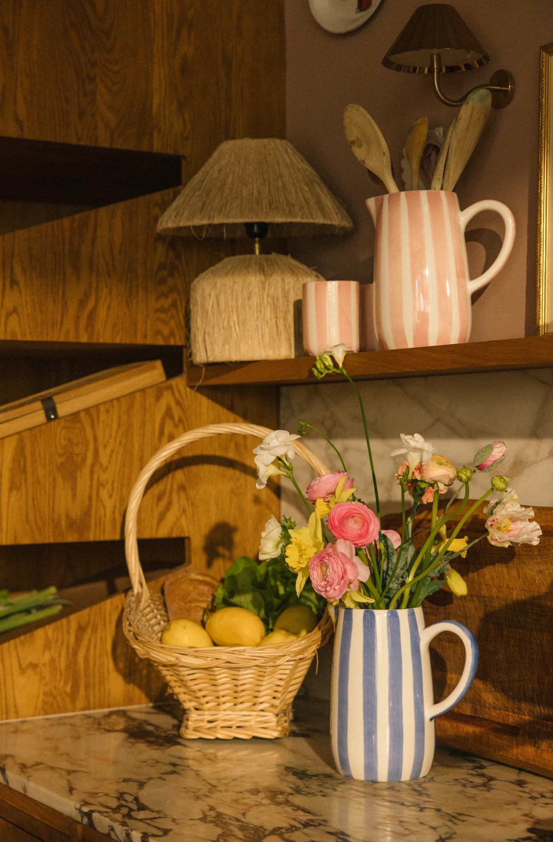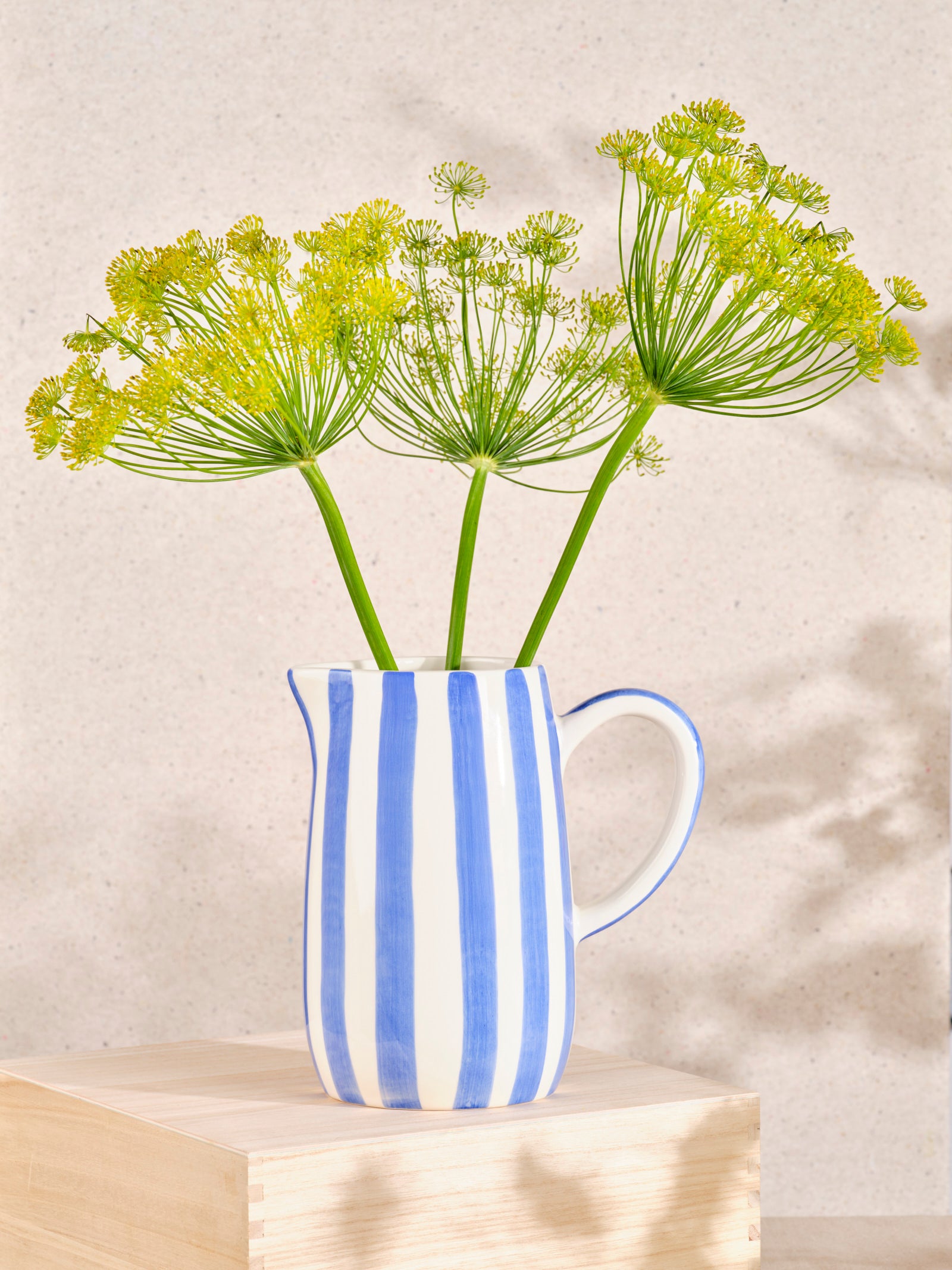 Beginnen Sie Ihren Morgen mit einem Hauch Blau! Diese Kanne, mit ihren handbemalten blauen Strichen, verleiht jedem Tisch einen erfrischenden Look. Ob Sie frischen Saft beim Frühstück servieren, eine hausgemachte Limonade an einem sonnigen Nachmittag oder sie als Vase für frische Blumen nutzen – diese Kanne ist perfekt für jeden Einsatz!