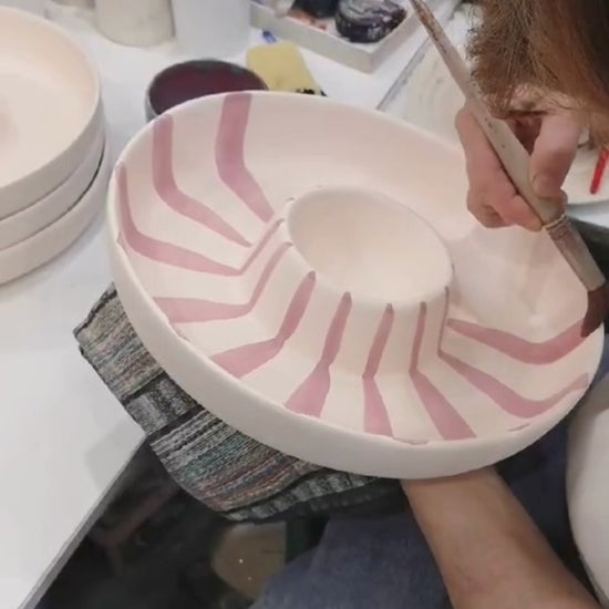 Strak en stijlvol - deze paarse schaal steelt gegarandeerd de show. De diepe, paarse strepen maken deze schaal het perfecte item om hapjes te presenteren, of je nu vrienden ontvangt of geniet van een gezellig moment alleen. Gebruik het als middelpunt tijdens borrels of bij je voorgerechten.