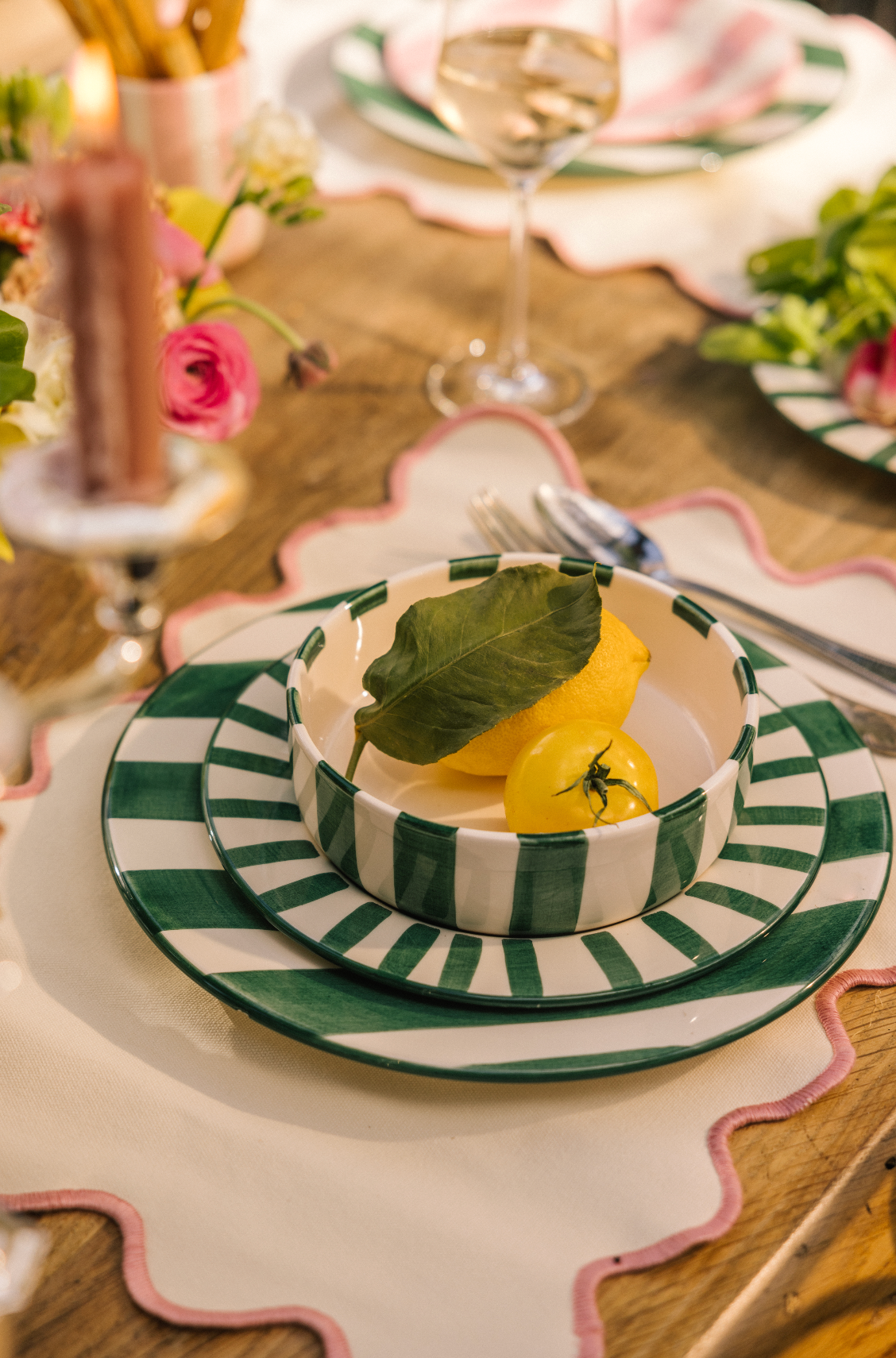 Stylingtip van Nina: Het dinerbord Green Kelly is gebaseerd op het Kelly Tafelkleed uit onze allereerste collectie. Wat is er mooier dan ze te combineren met hun grootste inspiratiebron?