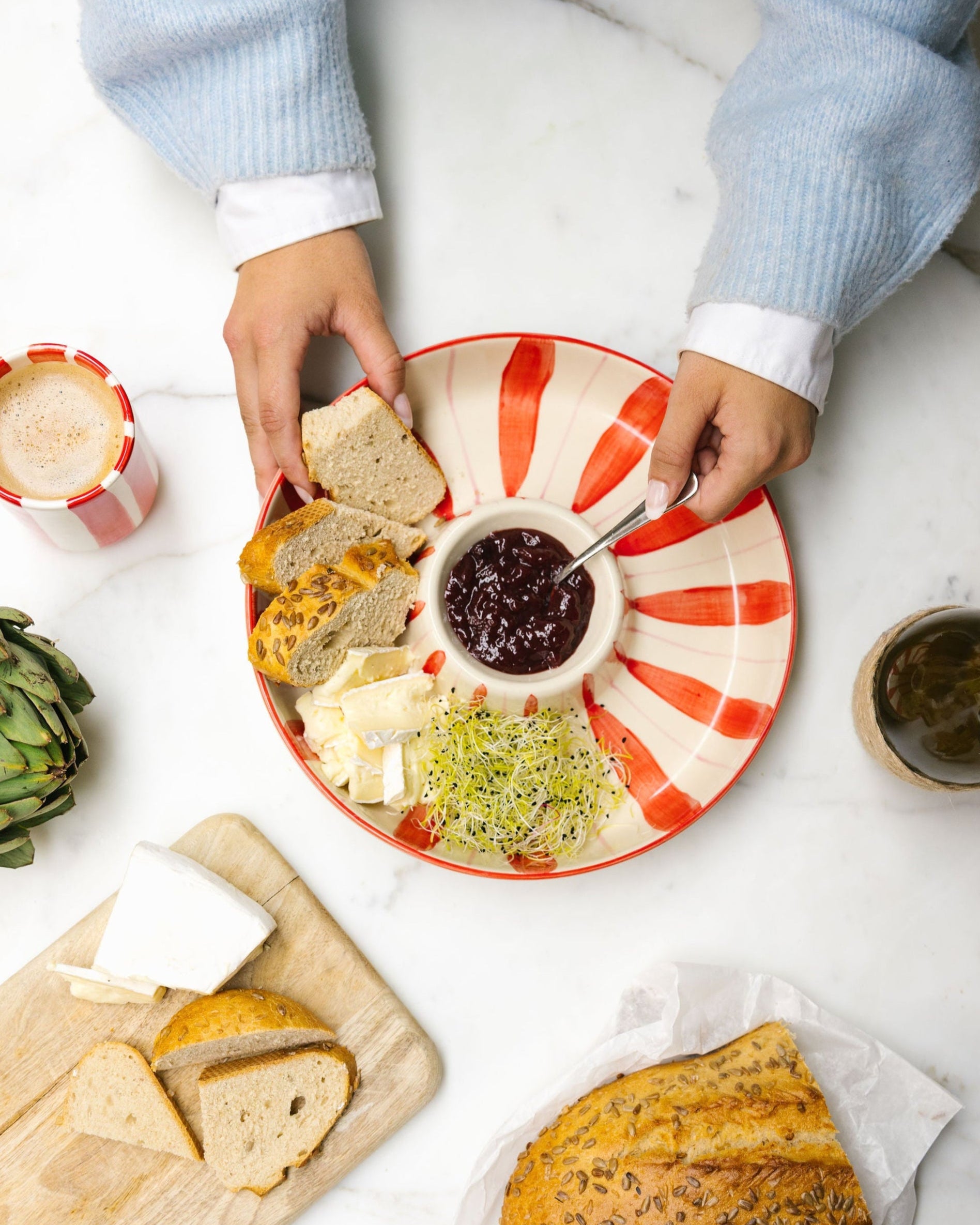 Bring warmth and vibrancy to your table with our Chip ’N Dip Bowl Lizzy. The hand-painted red stripes make this bowl perfect for festive occasions. Ideal for serving your favorite snacks in style and enjoying every moment together with your guests.